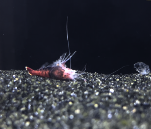 Fertilized eggs develop in the female’s underbelly until they hatch into miniature versions of adult shrimp, known as shrimplets, typically within 30-45 days depending on temperature.